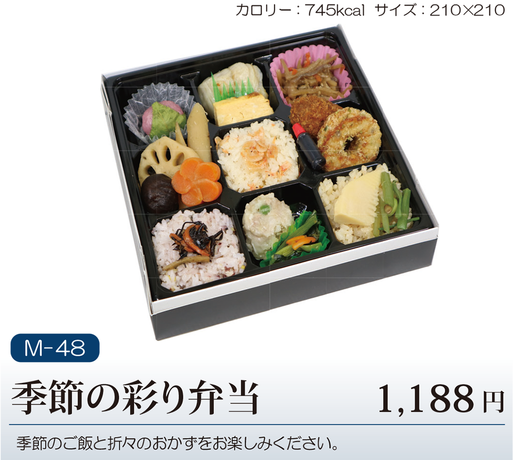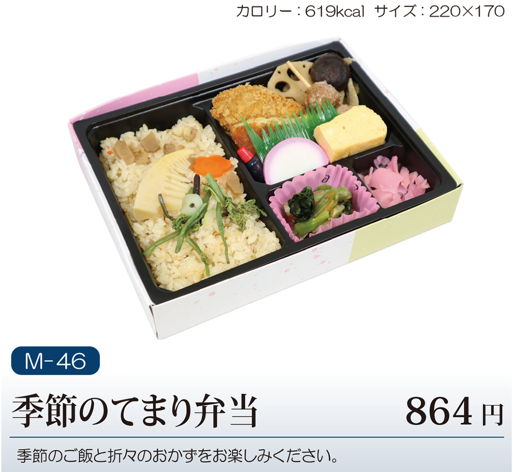 ご注文は、1社1アイテム5個からのご注文となります。 取引各社様(お弁当)の価格は、現時点での販売価格表記(税込)となります。 今後、原材料費・物流費等の高騰に伴い、先のご予約の場合価格変更の可能性がございますので、予めご了承ください。 季節により、メニューの一部を変更させて頂く場合がございます。 ※ご注文数が200個以上の場合や、ご注文日のお弁当各社様の注文状況によりお受けできない場合がございますので一度お問い合わせください ※お弁当のお持ち帰りに関しましては食品衛生上の観点からお断りさせていただきます。 ※下記メニューの料金には消費税<税率8%>が含まれています。 サービス内容により税率が変わります。 詳しくは下記までお問い合わせください。 ( 画像をクリックしていただくと、拡大表示してご覧いただけます。 )