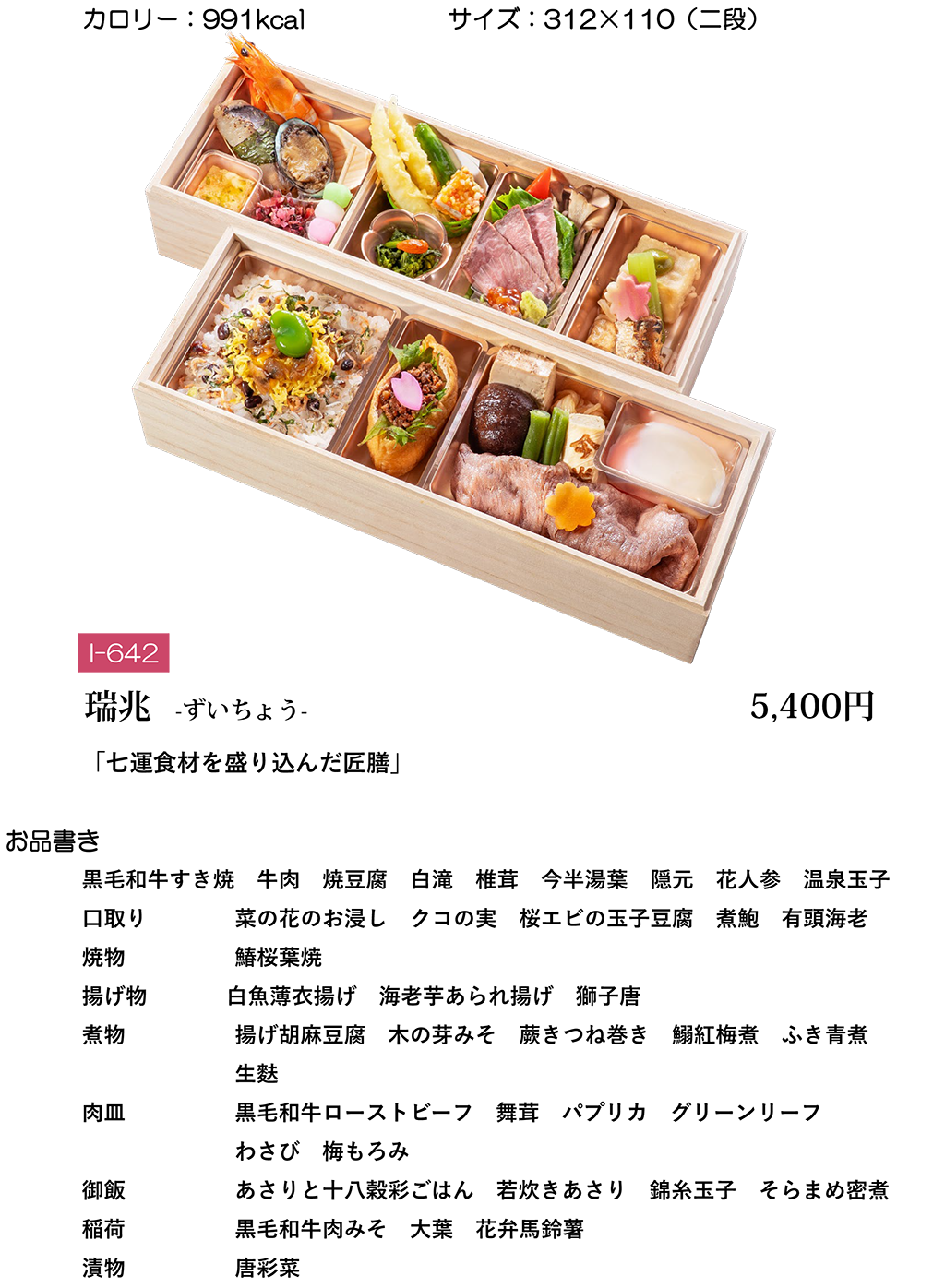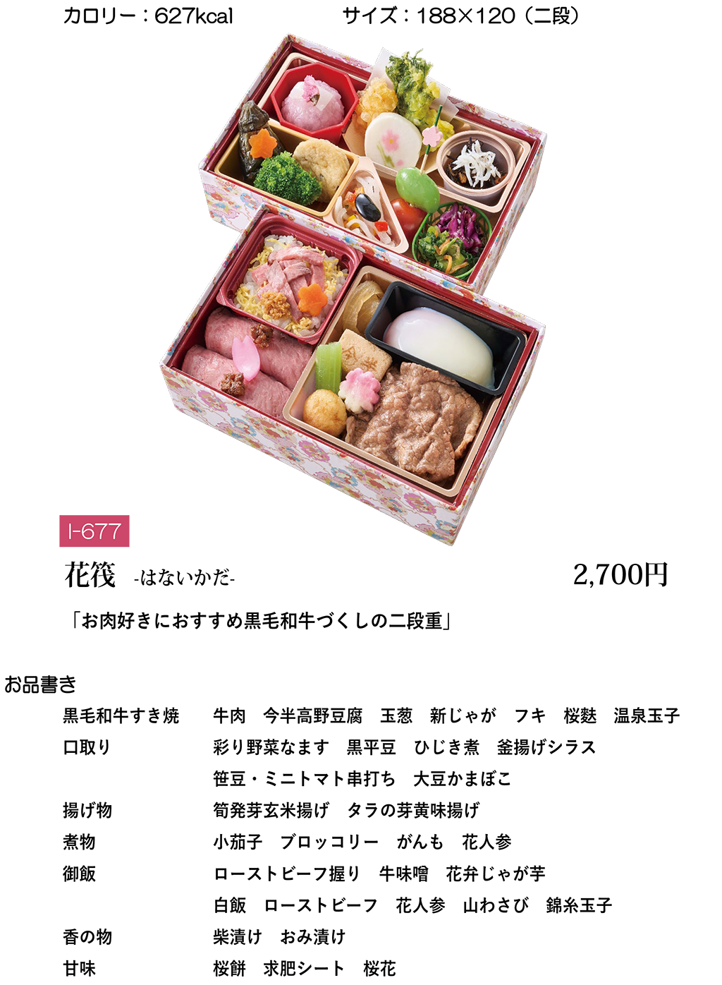 ご注文は、1社1アイテム5個からのご注文となります。 取引各社様(お弁当)の価格は、現時点での販売価格表記(税込)となります。 今後、原材料費・物流費等の高騰に伴い、先のご予約の場合価格変更の可能性がございますので、予めご了承ください。 季節により、メニューの一部を変更させて頂く場合がございます。 ※ご注文数が200個以上の場合や、ご注文日のお弁当各社様の注文状況によりお受けできない場合がございますので一度お問い合わせください 9月のご注文不可日: 23日(火) 年末年始のご注文不可日: 12月26日(金)14:00以降~1月4日(日) ※お弁当のお持ち帰りに関しましては食品衛生上の観点からお断りさせていただきます。 ※下記メニューの料金には消費税<税率8%>が含まれています。 サービス内容により税率が変わります。 注)店舗商品とは異なります。 詳しくは下記までお問い合わせください。 ( 画像をクリックしていただくと、拡大表示してご覧いただけます。 )